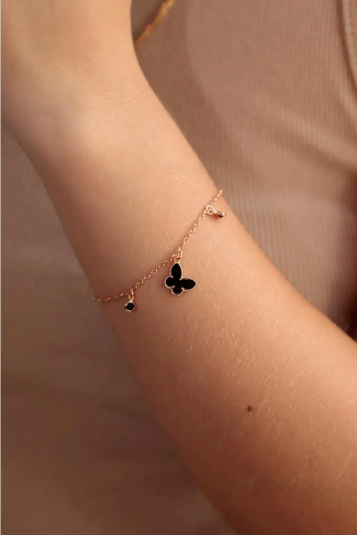 Pulseira Borboleta Onix com Dois Ponto de Luz Preto