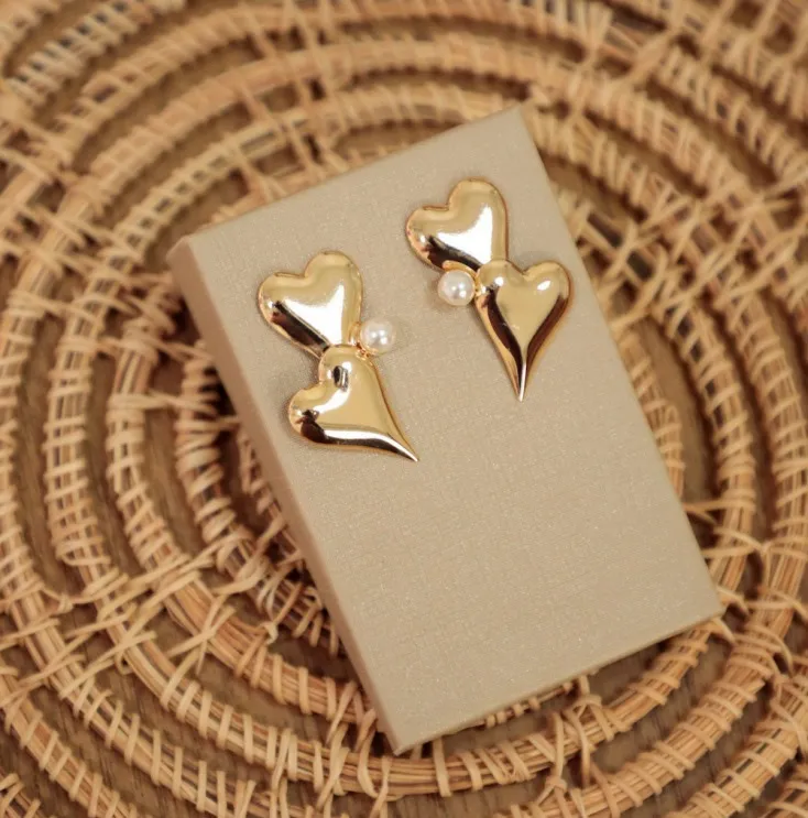 Brinco Dois Corações com Pérola